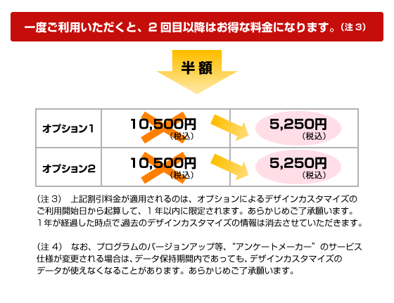 オプションにて、入力フォーム(アンケートフォーム)のデザインをカスタマイズできます。