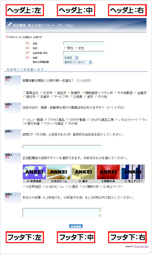 | オプション1 | ロゴマーク等の挿入 ヘッダ上(左、中、右)、フッタ下(左、中、右)の いずれか1ヵ所にロゴ等の画像を挿入することができます。 (注1) |