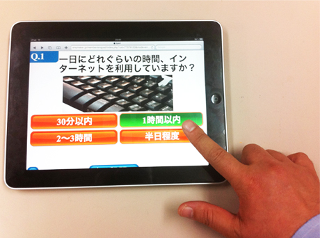 指タッチにより、従来アンケートより、回答者との距離が縮まり、アンケートから、セールス等のトークへのスムーズな流れが生まれます。
